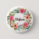 Knappen blommigt av anpassade. Den har vattenfärgsutandning av rosa och orange blommor, grönt, lavender och fjädrar. Knappen för andning av blommigt är perfekt som personlig.