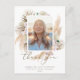 Ett modernt examens tacksamhetskort med ditt foto omgivet av vattenfärg pampasgräs och blommor. Rubriken "tack" är i modern kalligrafiskrift.