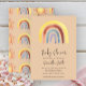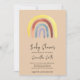 De här vackra inbjudningarna till babyduschen har trendiget boho stil och handskrivet skript för trendig. Neutralt söt målad vattenfärgsregnbåge.
