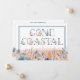 Detta fantastiska kort som säger "Bortflyttad till Kusten" i en underbar vattenfärgsskrift där sjöväxter är sammanflätade med bokstäverna och kantas av koraller och sjögräs är perfekt för att meddela din flytt till familj och vänner. Människor kommer att älska den kustnära designen. Skaffa nog för att skicka till alla som behöver din nya kontaktinformation. Texten på baksidan kan anpassas.
