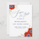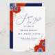 Nautical Boutique Co.'s red, white and blue Save the Date design har vackra vattenfärgsröda vindrutor med blå centrum. Modern flytande skripttypografi paras med traditionella blockbokstäver, ge designen uppskalning av stil. #Nautical #Anemone #SaveTheDate #SaveYourDate