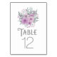 En delikat och mejeribukett med vattenfärger blommar i pastellskuggor från lilac till orkidérosa tillsammans med ett dekorativt "Bord"-teckensnitt samlas för att ge elegant till dekorationen i bröllop bord i detta sifferkort. Sök i ID654 om du vill se det andra biet i den fullständiga bröllop-uppsättningen.