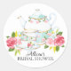 Snygg klistermärke för bröllopsdusch med vintage tekanna och tekoppar med rosa vattenfärgblommor