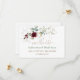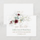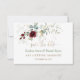 Elegant design med vattenfärg burgunderröda blommor, luftiga blad, eucalyptus, falska guldbaldakiner, modern "spara datum"-kaligrafi; på baksidan initialer och blommig komposition. Använd Anpassa-verktyget för att lägga till din information. Matchande artiklar finns i min Burgundy Blommig Luftiga Grönska-samling.