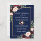 Vattenfärg Burgundy Blue Blommigt Bröllop Guld Ram Inbjudningar