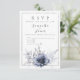 Ett vackert vattenfärgsblommigt bröllops-RSVP-kort i nyanser av dammig blå och lila. All information i RSVP-kortet kan enkelt anpassas med detaljerna från din speciella dag. Matchande föremål finns också i min butik.