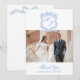 Vattenfärg Designer Blå Monogram Foto Tack Kort