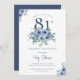 Vuxen på födelsedagsinbjudningar | Vattenfärg Dusty Blue Blommigt 81:a Chicens födelsedag Denna elegant- och chic-design tvättat ut dammig blått blommigt i färgad och skripttypografi på vit bakgrund. Anpassa inbjudan med dina detaljer och om du vill ordna om stil och placera texten ytterligare trycker du på knappen "Klicka för att anpassa ytterligare". För fler produkter inom samma tema, besök min butik: Youtopia Officiell.