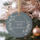 I en blommigt med eukalyptus-vattenfärg talas det om denna julprydnad - namn och datum är anpassade. Den här designen ingår i en stor samling bröllop.