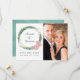 Trendigt geometriskt eukalyptusgrönt och rosafärgade rosor bröllop sparar datumet med guldgeometrisk ram och mint vattenfärg tvätt bakgrund.