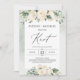 Vattenfärg eukalyptus vita rosor elopement inbjudningar