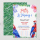 En livfull design med vattenfärg palmblad och färgglada papegojor som frammanar en hawaiiansk djungel tropisk stämning perfekt för en livlig fest.