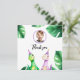 Ryck in i ett förhistoriskt äventyr! Fira med vår söta vattenfärg T-Rex-design. Med lekfulla dinosaurier omgivna av gröna blad är denna anpassningsbara design perfekt för en dino-mysig fest. Lägg till ditt barns foto för en personlig touch.