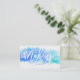 En modern stilfull visitkort för makeupkonstnär med skrivar bokstäverstil borstar typografi i vit på en turkos, slösar havet, och strandvattenfärgen räcker målad bakgrund