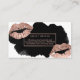 En elegant modern, stilfull och enkel visitkort för makeupkonstnär med elegant skrivar räcker bokstäverstiltypografi med ramen och läppar för faux den rosa guld- på en svart vattenfärg- och vitbakgrund. En enkel och yrkesmässig design