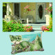 Vackra trädgårdsscener med en mängd olika shruber för grönt, rosa blommigtar och staket och vacker bakgrund i blå himmel. Underbar för inomhus..Inträstolar i ytterhallen för att göra en underbar kontaktpunkt, eller utomhus med terrordekan och så mycket mer. En originaldesign som du inte hittar någon annanstans!