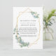 Skogs eukalyptus grönska reducerad gästlista annons kort. I dessa osäkra tider kan det hända att du måste hålla ett mindre bröllop än vad som ursprungligen planerats. Detta annonskort kommer att ta bort pinsamheten och ta en tyngd av dinnet! Du kan dessutom ge ett alternativ att delta i en virtuell ceremoni.