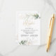 Mottagningskort med en illustration av grönt och guld bladverk i vattenfärgstil.