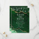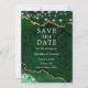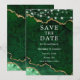 Moderna Eleganta Vattenfärg Smaragdgrön och Guld Marmor Agat Geod Save The Date-kort med Strängljus
