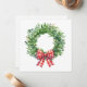 Detta julkort har en grön krans med röd gingham-slöja. Personalisera baksidan med ditt val av namn eller speciell text.