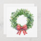 Detta julkort har en grön krans med röd rutig band. Personifiera baksidan med ditt val av namn eller speciell text.