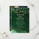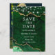 Modern Elegant Vattenfärg Smaragdgrön Och Guld Marmor Agat Geod Spara Datum Kort Med Strängljus - Foto Bakgrund