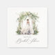 Elegant bröllopsdusch pappersservett med kalligrafi skrift ''bröllopsdusch'' i trendig handskriven stil, vattenfärg valv med blommor, grönska bladverk och brud i bröllopsklänning. Anpassa med namn.