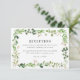 Vårt stilrena botaniska bröllopsmottagningskort har målad vattenfärg lövvärk i livliga vår- och mossingrönor som kantning på kortet. Anpassa designen genom att lägga till detaljer om ert brölloppsmottagande. Designad för att samordna med vår Vattenfärg Grönska bröllopssamling.