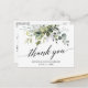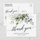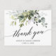 Modern kalligrafiskrift Elegant vattenfärg botanisk grönska Bröllop tack-kort inkluderar eukalyptusblad, grön botanisk lövverk, dammig blåa blad och annan vacker botanisk grönska.