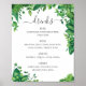 Vattenfärg grönska lövbröllop dryckesmeny poster