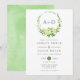 Vattenfärg Grönska Monogram Krans Bröllop Inbjudningar