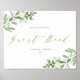 Vattenfärg Grönska och Vita Blommor Gästbokskylt | Elegant bröllopskylt med vattenfärg illustrationer och mönster av lövverk och vita blommor. Denna gröna gästbokskylt är perfekt för vårbröllop, baby shower och mycket mer.