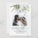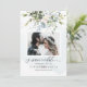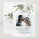 PixDezines grönska och vattenfärg blommor dammiga blå blommor med blå eukalyptus, en Foto spara datum kort.