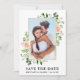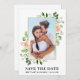 Modern Vattenfärg Eukalyptus Grönska Rosa Rosor Ram Spara Datum Foto Förlovnings Annonseringskort - Guld Ram