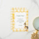 Det här charmiga tackkortet har en vattenfärgsillustration av en anka, perfekt för en fantasifull födelsedagsfirning. De mjuka, pastella nyanserna i turkos och gult skapar en glad och inbjudande design, idealisk för att uttrycka tacksamhet på ett förtjusande och minnesvärt sätt.