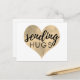 Skickar en kram postkort med ett guld vattenfärg hjärta i bakgrunden. Ett bra sätt att låta någon veta att du tänker på dem.