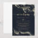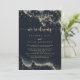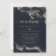 Detta vattenfärgskort med guldstänk för elopement-mottagning är perfekt för en rustik fest efter elopement. Designen har handmålad guldstänk på en mörkblå bakgrund.