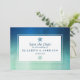 De här bröllop spara datum-korten är perfekt för alla par som planerar ett romantiskt giftermål vid havet. Konstruktionen har en vattenfärgsbakgrund i blå nyans och grönt med ett dekorativt vitt gräns ram och avslutas med ett snyggt stjärnmotiv. Den enkla utformningen kan vara personligen till kostym för ditt speciella evenemang och kommer att vara perfekten för alla strandteman party, inklusive: möhippor, förlovningar, möhippor, födelsedagsfester och mycket, mycket mer.