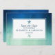 De här bröllop spara datum-korten är perfekt för alla par som planerar ett romantiskt giftermål vid havet. Konstruktionen har en vattenfärgsbakgrund i blå nyans och grönt med ett dekorativt vitt gräns ram och avslutas med ett snyggt stjärnmotiv. Den enkla utformningen kan vara personligen till kostym för ditt speciella evenemang och kommer att vara perfekten för alla strandteman party, inklusive: möhippor, förlovningar, möhippor, födelsedagsfester och mycket, mycket mer.