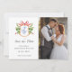 Elegant "Spara datum" bröllop Fotokort för vinterbröllop i Helgdag med vapensköld av hand plockade med vintern grön och bog med par initialer.