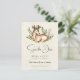 Spara datumet vigselkort med en söt hjort som ligger ner omgiven av lövrik flora. Rustik Boho stil design.