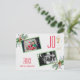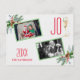 Unik typografi, Vattenfärg Högtidlig arrangemang Familjefoto kort. Den har vattenfärg vintergrönska, heliga bär, kott, tall, julgranskula och glas med champagne som Y från ordet GLÄDJE. Använd Anpassa verktyg för att lägga till din information. Mer om min Jul med glädje Kollektion.