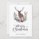 Anpassningsbar, vattenfärgade julkort för hjort med en handskriven titel och med en stämpel på en halvgrön andedräkt täckt med snö. Anpassa enkelt dessa vackra julkort för vattenfärg med din familj namn och text.