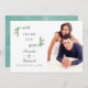 Eleganta pastellfärgade vattenfärg julen holly bröllop tackkort med eukalyptus, mistel och tall komplementerad av en mintfärgad vattenfärg tvätt baksida.