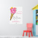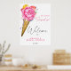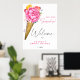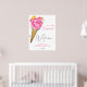 Denna glassematade möhippa dekoreras med vattenfärgade blommigtar och en glasskon. I texten står det: "Hon har blivit uppläxad!" i snyggtens rosa, manusskrivstil.