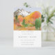 Höst Vattenfärg Berg Tallar Foto Spara datumet - Ett vackert, vattenfärgat bergslandskap visas på vår Spara datumet-kort i en vacker höstfärgspalett. Modern, minimalistisk typografi visas också med ett foto av det lyckliga paret på baksidan av inbjudan/meddelandet. Spara datumet är en del av en samling.