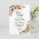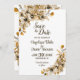 Denna höstblommiga bröllops kortspara-datum-kort fångar essensen av hösten med sin rustika blommiga design. Kombinationen av höstfärger, blommande kronblad och gyllene blad skapar en charmig och romantisk stämning. Detta kort är perfekt för par som planerar ett vackert höstbröllop och är det perfekta sättet att tillkännage era kommande bröllop med stil.