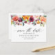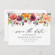 Spara datumet! Meddela din bröllopsdag till familj och vänner med detta blommiga spara datum-kort. Det har en vattenfärgsblommig girland eller burgunderröda, rosa och orange höstblommor. Personalisera genom att lägga till namn, datum, lokal och andra detaljer. Dessa höst-spara datum-kort är perfekta för höstbröllop.