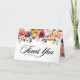Skicka tack till familj och vänner med detta anpassningsbara tackkort. Det har vattenfärgillustrationer av burgunderröda, lila, orange och rosafärgade blommor med grönskaaccent. Detta blommiga tackkort är perfekt för höstbröllop, baby shower, brud shower och andra evenemang. Anpassa genom att lägga till namn och meddelande.