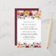 Bjud in gästerna med denna höstbröllopsinbjudan. Den har vattenfärgskransar av höstblommor i nyanser av orange, rosafärgad, röd och vinröd med bladaccent. Anpassa genom att lägga till namn, datum, tid och andra detaljer. Denna höstblommande bröllopsinbjudan är perfekt för höstbröllop. Matchande artiklar finns tillgängliga.